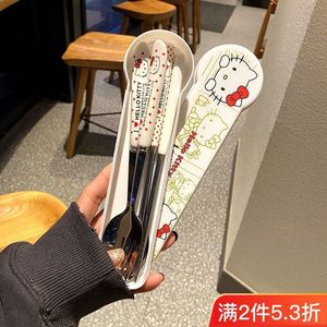 【送料無料】食器 ステンレス 箸 スプーン フォーク 学生セット 収納ボックス ポータブル 3点セット かわいい