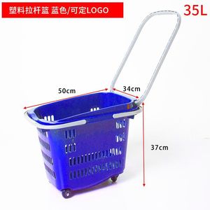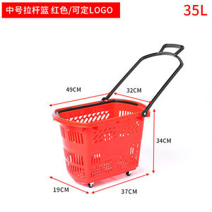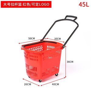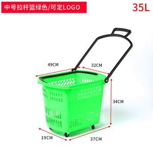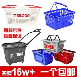 超市购物篮拉杆带轮手提购物筐零食便利店加厚购物塑料买菜小泓小