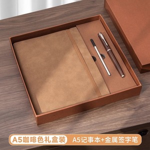 ギフトボックス-ブラウン-A5 シープスキンストラップメモ帳