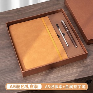 ギフトボックス-キャメル-A5 シープスキンストラップメモ帳