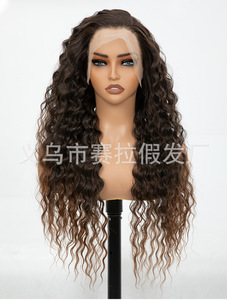 ヨーロッパとアメリカのかつら女性のふわふわ焼きレースフロントウィッグロング巻き毛外国貿易ヘッドギア 13*4 化学繊維かつら女性のかつら