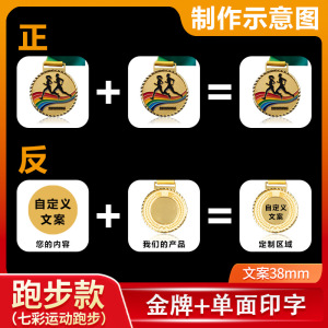 メダル・金メダル 6.5cm カラフルランニング+片面金箔(フリーデザイン)