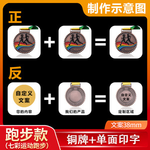 メダル・銅メダル 6.5cm カラフルランニング+片面金箔(フリーデザイン)