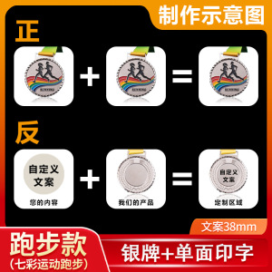 メダル・銀メダル 6.5cm カラフルランニング+片面金箔(フリーデザイン)