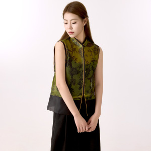 新しい中国風の古典的な女性用ベスト、中国風の夏の薄いアウターウェア、シングルブレストのリアルショット、レトロなハイエンドのベストトップ