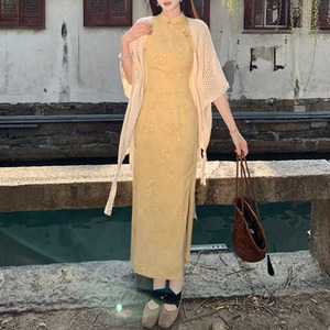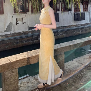 ノースリーブグースイエローチャイナドレス
