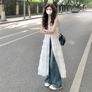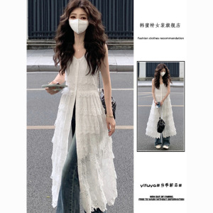 デザイン中空レースサスペンダードレスレディースサマードレス新しい韓国スタイルレイヤードインファッションケーキロングスカート