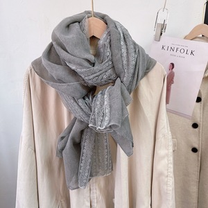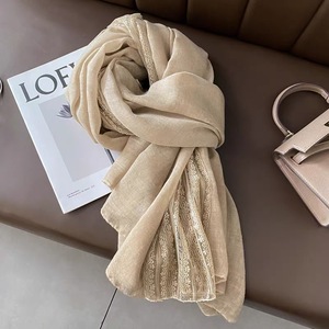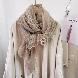 亜麻色レース綿麻薄手マフラー女性冬ストール春秋洋気ファッションマフラー純色ガーゼ