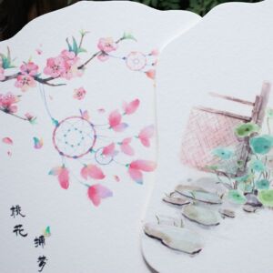 【桃の花のドリームキャッチャー】小景彩絵漆扇子