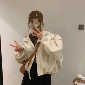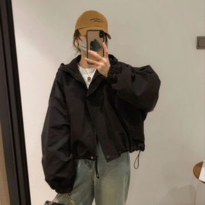 时尚设计感冲锋衣女2025年春秋新款宽松小个子短款连帽夹克外套潮