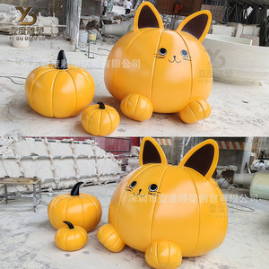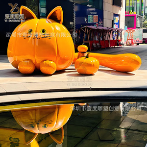 グラスファイバークリエイティブインターネット有名人漫画マスコットグラスファイバーカボチャ猫彫刻人形ショッピングモール歩行街の装飾品