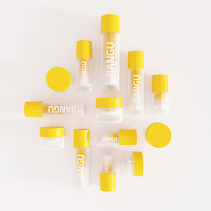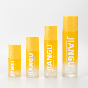化粧品包装材料黄色のすりガラスボトルカスタマイズされた衛生的で環境に優しい交換可能なライナースキンケア製品セットボトル