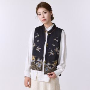 新中国式刺繍立襟ベストレディース国風レトロジャカード気質ベスト国潮ノースリーブコート
