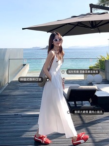 3027 # Zeng Xiaoxian 優しいフレンチホワイトサスペンダードレス夏の海辺の休暇スカートシフォンサスペンダースカート