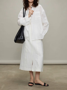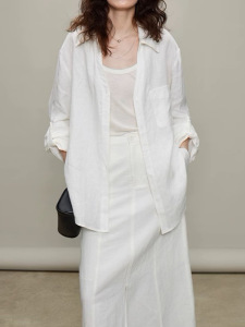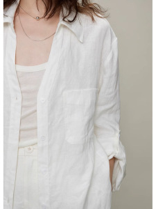 フランスの白い亜麻のシャツの女性の夏の薄い金のゆったりした古いお金の風は高級な綿の麻のシャツの日焼け止めの上着を着ます。