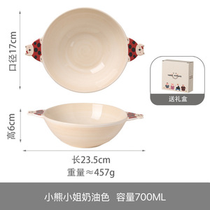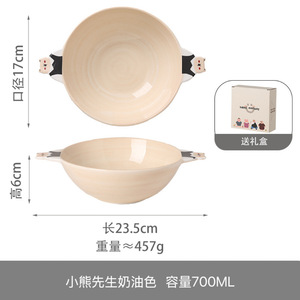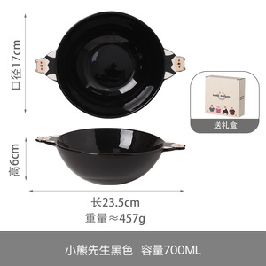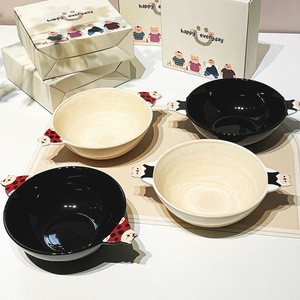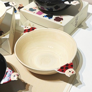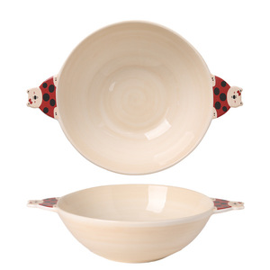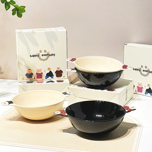 新しい漫画双耳ボウル家庭用フルーツサラダミキシングボウル子供用ライスボウル釉下色セラミックヌードルボウル卸売