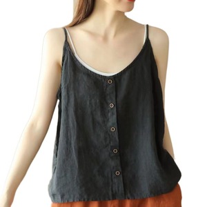 綿とリネンのキャミソール 2025 夏の新スタイル文学レトロトップボタン装飾薄い緩いインナーレイヤリング女性のための