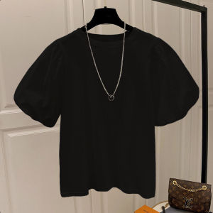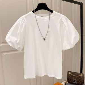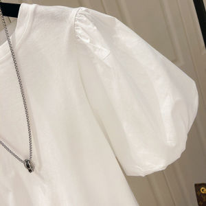 2025 新しい夏の韓国スタイル白ラウンドネックパフスリーブ半袖 Tシャツイントレンディな薄いショート女性のトップ