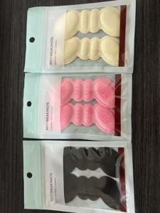 ハイヒールの滑り止めは後ろにステルスを貼って、足を磨かないようにします。