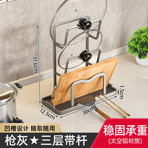キッチンカウンター収納ラック 多機能鍋蓋ラック 穴あけ不要 立て型まな板・鍋つかみ収納