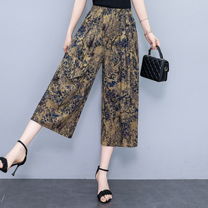 夏の新作純綿シルクワイドレッグパンツ大きいサイズゆったりクロップドパンツ中高年ママカジュアルハイウエストスカート薄手