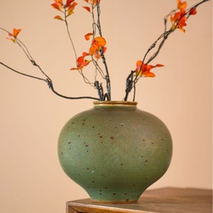 新商品レトロ新中国式墨緑円球花瓶客レストラン玄関家庭陶磁器乾花水培置物景