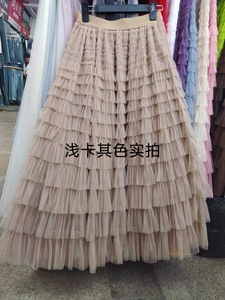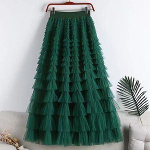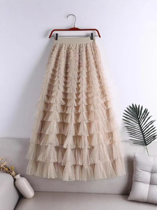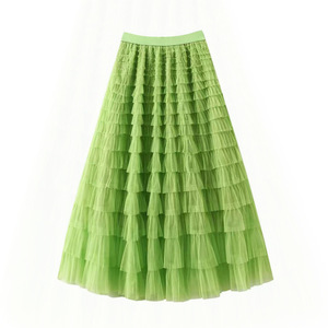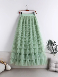 外国貿易フリルガーゼスカート妖精スカート女性のための 2025 夏痩身ロングスカートハイウエスト A タイプメッシュケーキスカート