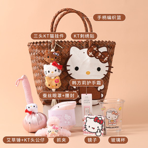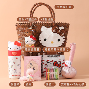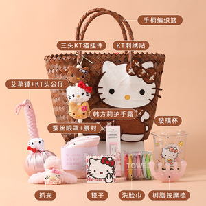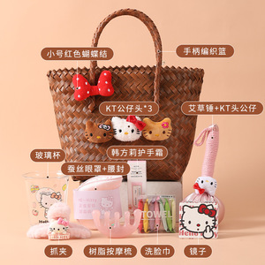 女性のブライズメイドのための結婚式の記念品、ガールフレンドのための実用的な小さなギフト、ハイエンドのKT猫編みバスケットギフトセット卸売