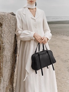 Qiu Zhen 植物タンニンなめし牛革ヨーヨーボウリングバッグレディースレトロハイエンド通勤大容量ポータブルショルダーバッグ女性用