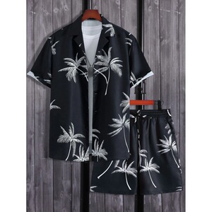 国境を越えた対外貿易卸売りTEMUアマゾン港風男性レジャースポーツビーチ半袖シャツショートパンツセット