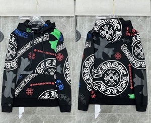 正确版现货批发24ss外贸潮牌CH克罗伈纯棉毛圈男女同款连帽卫衣