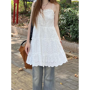 重ね着レースサスペンダースカート初春新作着痩せ万能白ジャガードAラインショートワンピース