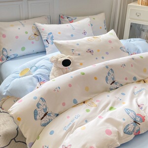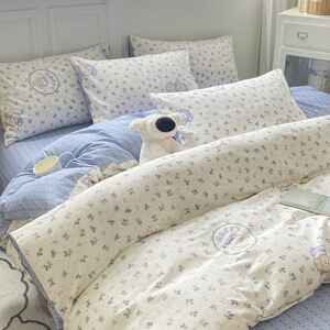 水星家纺全棉四件套100%纯棉被套单双人被罩学生宿舍床笠式三件套