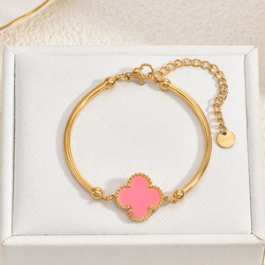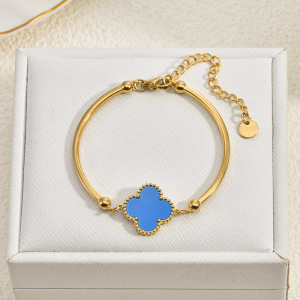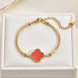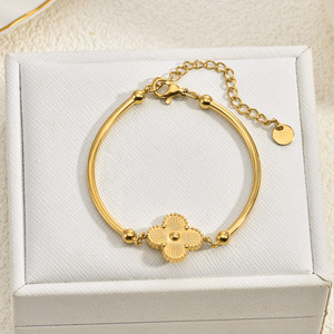 新型クロスボーダー人気ファッション高級感ブレスレット両面四葉草手環女性ステンレス手飾りメーカー卸売り