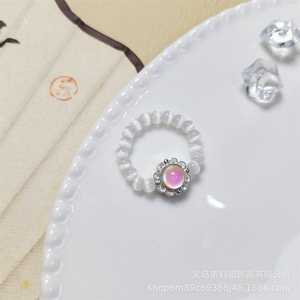 新款夏日小清新甜美可爱高颜值多巴胺ins风猫眼水晶闪钻小戒指