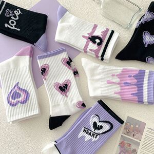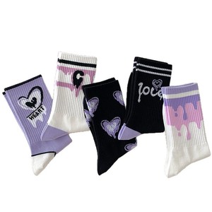 女性用ソックス、ミッドレングス、見栄えの良い、ストリートスタイル、秋冬イントレンド、多用途、アメリカンスタイル、ロングチューブ、漫画スポーツソックス
