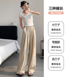 氷の糸の広腿のズボンの女性の2025新型の夏の垂感のカジュアルなゆったりしている怠惰な風の小さい背の綿麻の山本のズボン