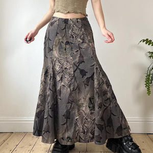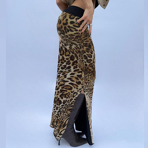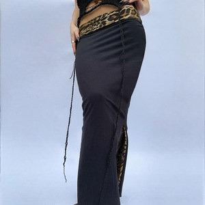 クロスボーダーストリートレディースリバーシブルカフスウエストヒップカバーワンステップスカートヒョウ柄プリントスリットスカートロングスカート