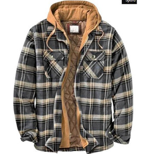 Amazonの人気メンズ秋冬厚手のコットンコートチェック柄長袖ルーズフード付きジャケット在庫あり