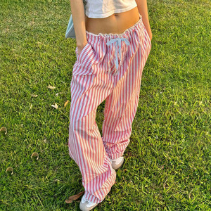 アメリカのリゾート風のカラーストライプのレースはカジュアルなズボンのギャルをつなぎ合わせます。