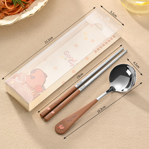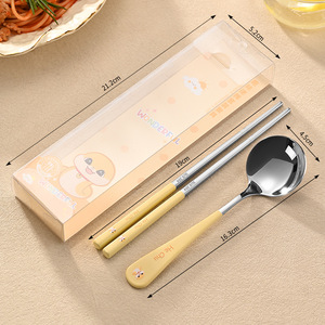 漫画子供食器スプーン箸収納ボックス304食品ステンレススプーン箸学生携帯食器セット