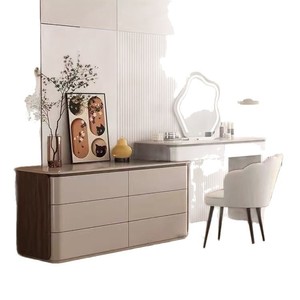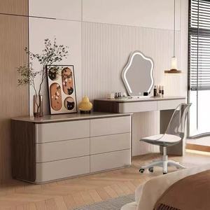 全実木ピアノ塗装中古軽豪華風両側胡桃木目寝室化粧テーブルキャビネット一体化粧台