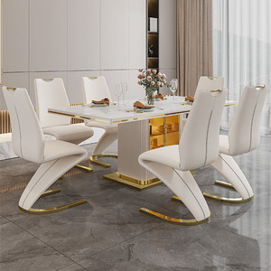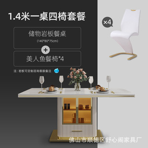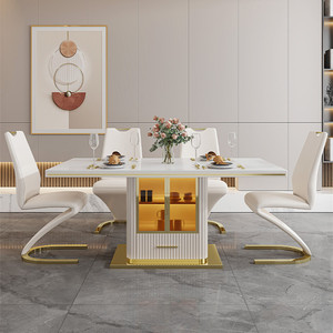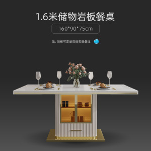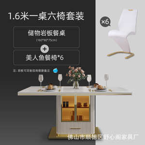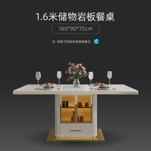 轻奢亮光岩板餐桌现代简约小户型高端家用饭桌长方形餐桌椅组合