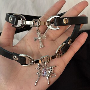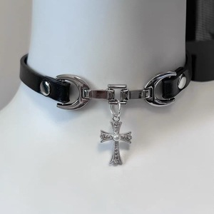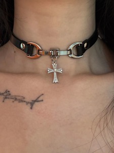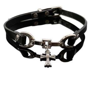 新しい甘いクールな大衆デザイン感choker暗黒ギャル十字架首輪皮質亜文化ネックレス首鎖