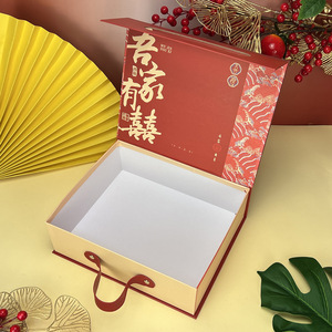 結婚式のお返しの喜糖の箱の中国式の手提げのお土産の箱の完成品は折り畳みの磁気吸引のフリンジキャンディーの包装箱を免除します。
