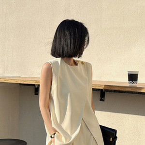 2025套装轻奢高级感知性轻熟风无袖上衣高腰阔腿裤夏装时尚两件套