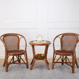 藤椅天然真藤靠背椅子休闲桌椅老人椅单人腾椅滕椅家用阳台三件套