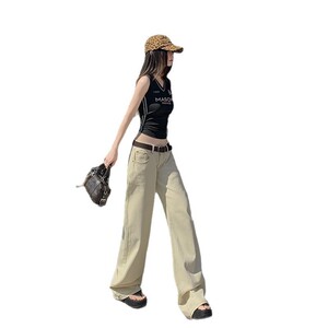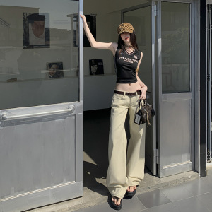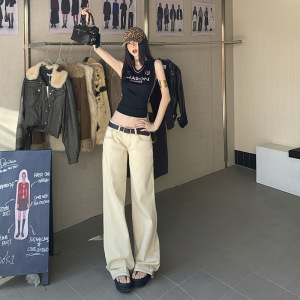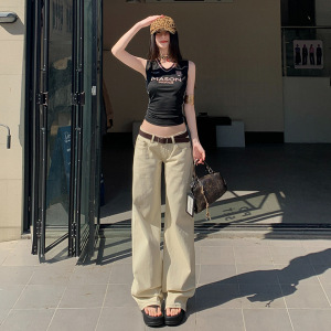 2025春新款米白色低腰牛仔裤女宽松显瘦小个子简约百搭直筒拖地裤