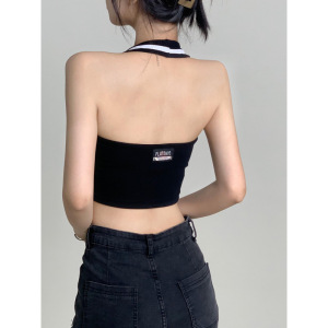 热辣美式辣妹挂脖小吊带背心女夏泰式运动抹胸爵士上衣外穿音乐节