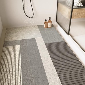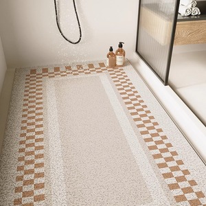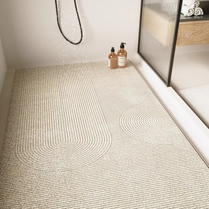 リネンスタイルのバスルームシャワールーム排水マット、耐摩耗性とお手入れが簡単、中空ワイヤーリングバスルームフロアマット、バスノンスリップマット
